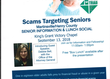 Senior Information and Lunch Social: Scams Targeting Seniors on September 13th, 11am to 1pm. Event is located at the King's Grant Victory Chapel, is free, and a "Box Lunch" is included. Call (276) 634-1000 to RSVP.